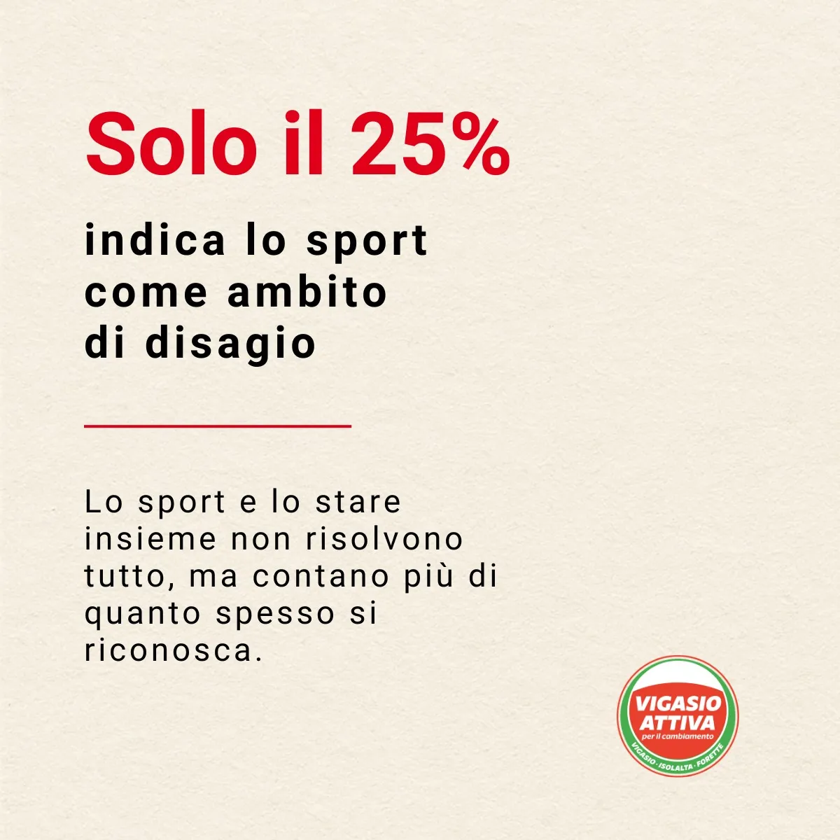 Anche per questo, nel programma di Vigasio Attiva, il tema degli 𝗶𝗺𝗽𝗶𝗮𝗻𝘁𝗶 𝘀𝗽𝗼𝗿𝘁𝗶𝘃𝗶, degli 𝘀𝗽𝗮𝘇𝗶 e delle attività 𝗰𝘂𝗹𝘁𝘂𝗿𝗮𝗹𝗶 non è messo lì per riempire una lista.